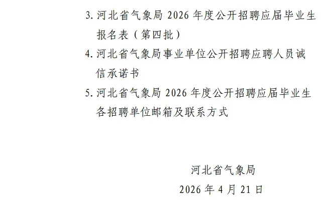 河北省气象局2026年度公开招聘5名应届毕业生公告(第2606号,石家庄、张家口、保定各1人,邯郸2人)