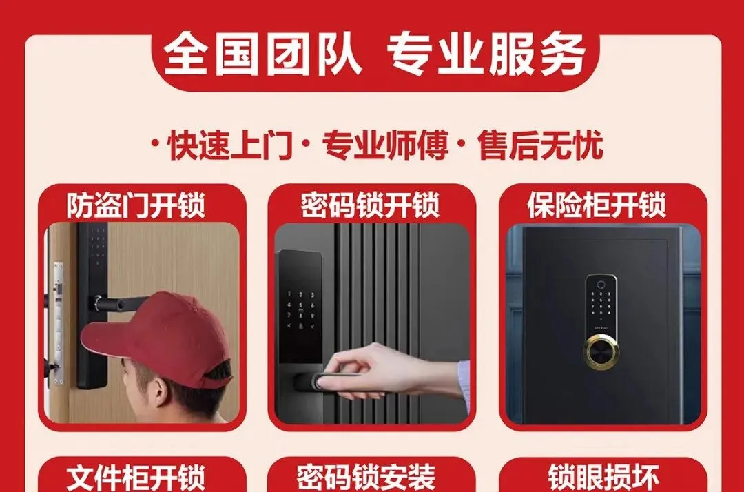 商用与特种锁服务:写字楼玻璃门地弹簧锁检修;指纹密码锁电路板故障处理与整体更换;银行/酒店/家用保险柜专业开锁。