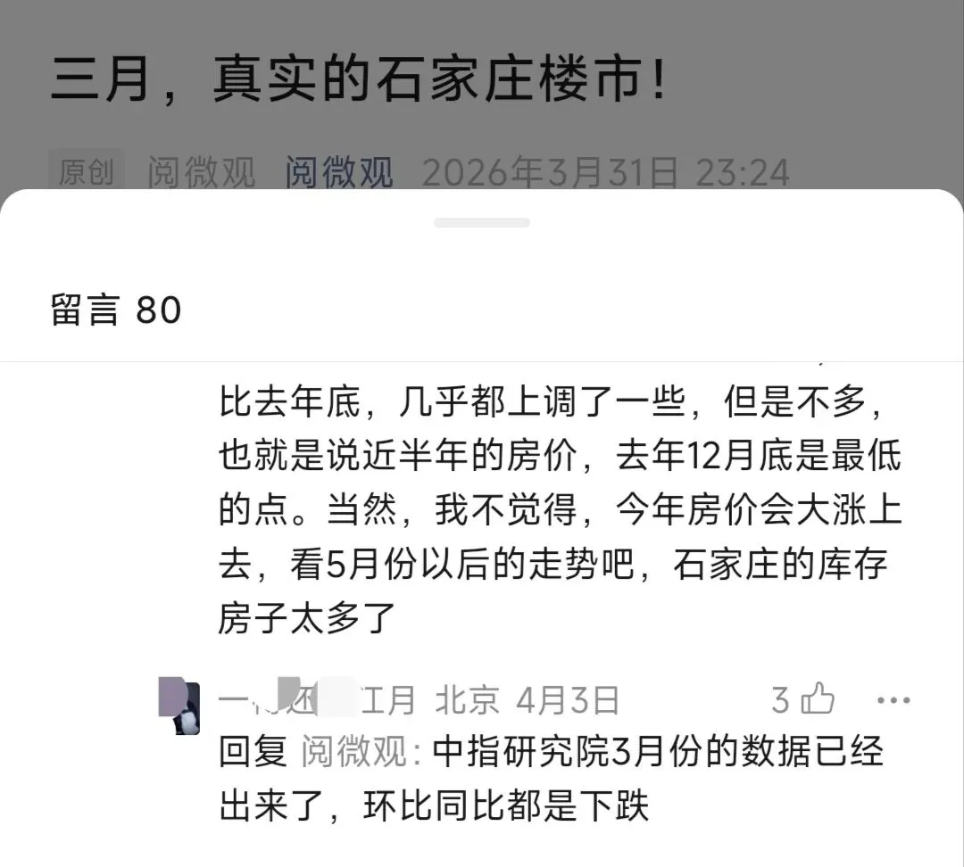 这是上个月的一篇文章,引起热议。有人质疑,明明权威统计,石家庄楼市同比环比都是跌的,怎么到你这却涨了呢?