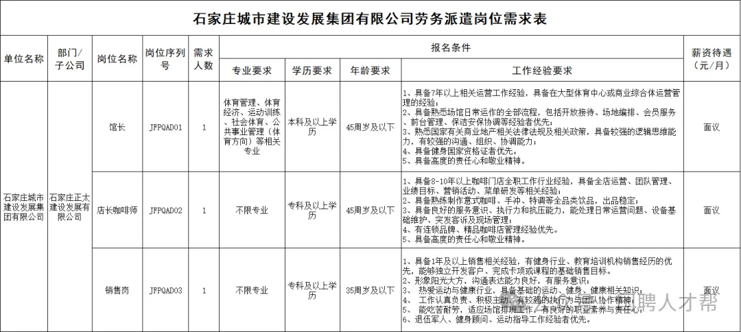 石家庄城市建设发展集团有限公司,成立于2022年4月,为国有全资企业。经营范围主要包括:土地整治服务;房屋拆迁服务;企业管理咨询;工程管理服务;物业管理;会议及展览服务;污水处理及其再生利用;停车场服务;非居住房地产租赁;房地产经纪;房地产咨询;市场营销策划;销售代理。目前主要承担太平河片区和正太广场周边区域建设工作。根据工作需要,石家庄城市建设发展集团有限公司特委托石家庄市国经人力资源管理有限公司面向社会公开招聘劳务派遣制人员3名。现将具体招聘流程设定如下:招聘工作坚持德才兼备的用人标准和“公开、平等、竞争、择优”的原则,面向社会实行市场化公开招聘。采取网上报名、资格初审、资格复审、面试、体检、拟录用等步骤进行。