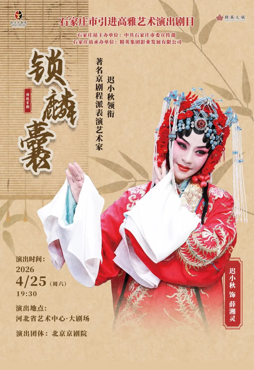 迟小秋,一级演员,非遗传承人,著名京剧表演艺术家, 现任全国政协委员、北京京剧院党委委员、北京戏剧家协会副主席、中国戏剧家协会理事、曾任第十届全国人大代表。