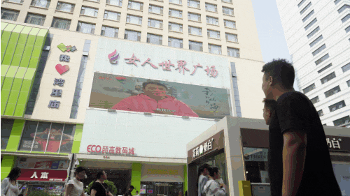 湾里庙步行街多处电子屏轮播五一惠民书市的消息,吸引市民驻足观看