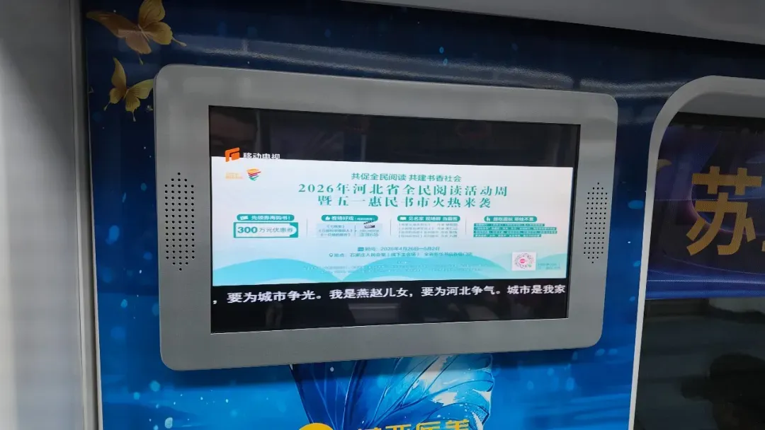 不仅在商圈能看到五一惠民书市即将举办的消息,石家庄市民出行乘坐的地铁、公交、出租车等也化作流动的邀请函,滚动播放着五一惠民书市的盛情邀约。