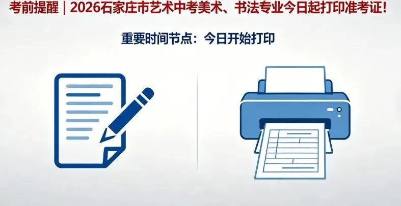 2026石家庄美术、书法专业考生准考证打印时间为2026年4月22日9:00至4月25日17:00,记得打印准考证,黑白均可!