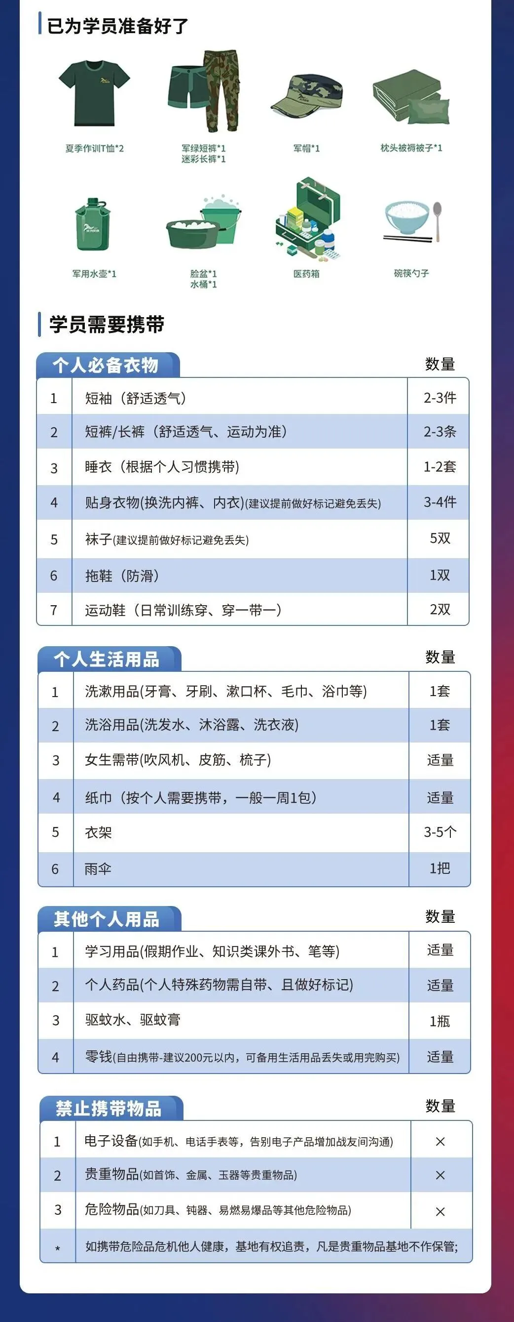 ★夏令营活动采用全封闭式军事化管理,学员统一食宿,活动期间不安排家长到营地探视,如有特殊原因,请提前电话与我部联系;