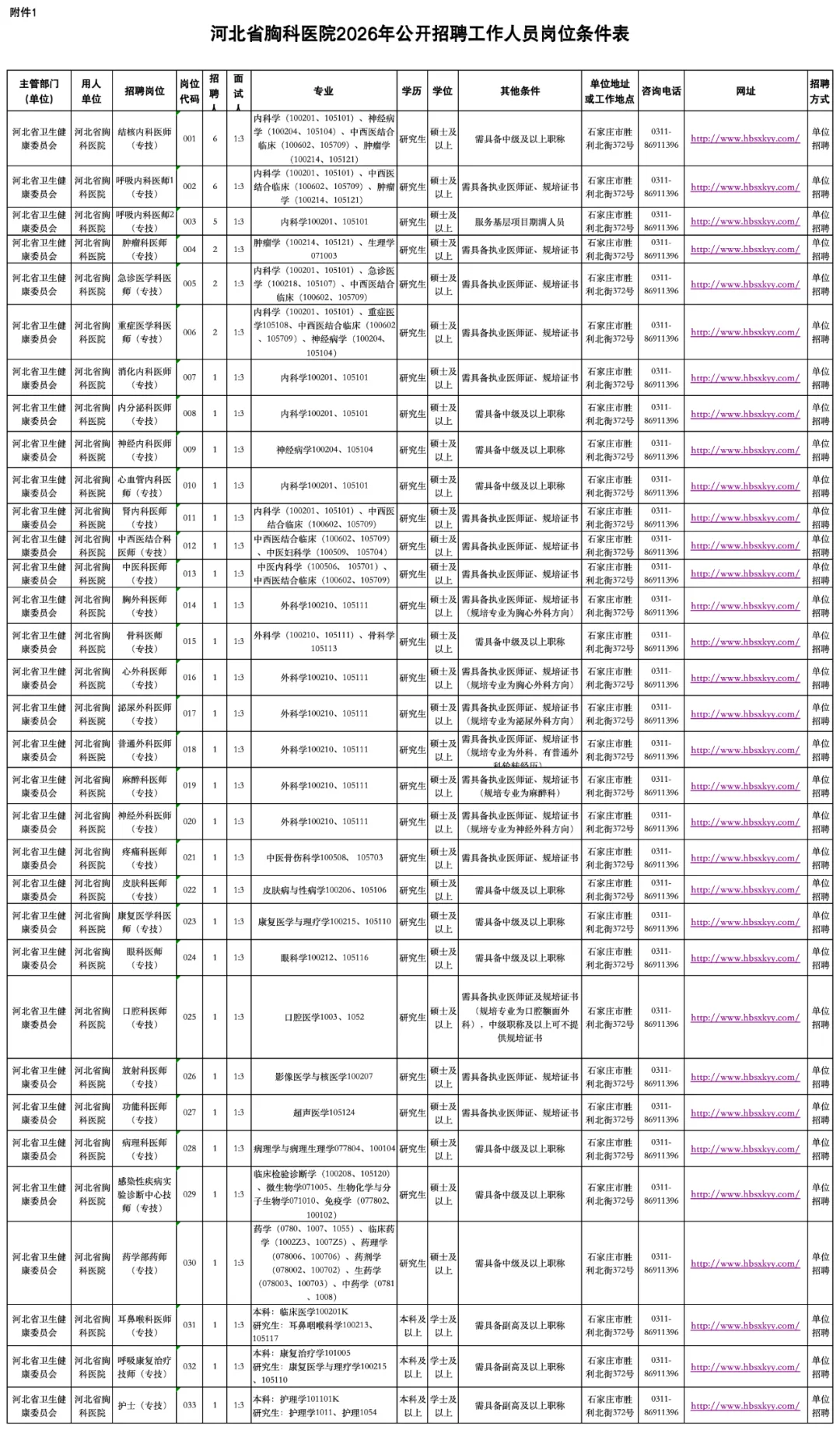 附件:河北省胸科医院2026年公开招聘工作人员岗位条件表