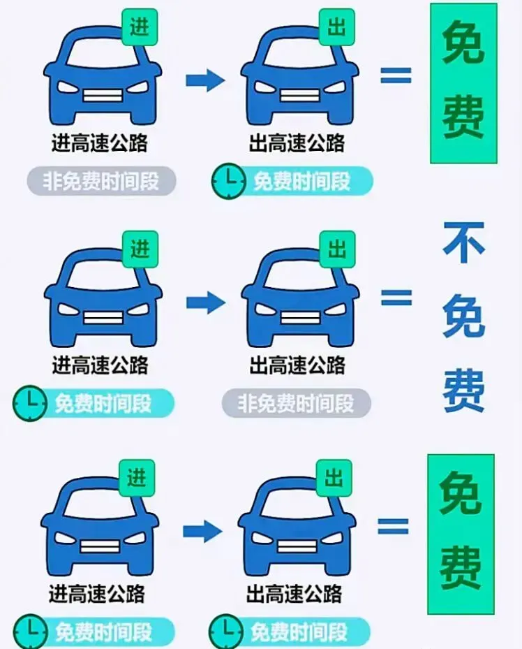 若上高速为收费时段,下高速恰逢免费时段,全程可享受免费政策;若在免费时段驶入高速,离开高速时已超出免费周期,将正常收取全程通行费用。建议广大车主注意上下高速的车道匹配问题:如果驶入高速时走的是人工收费通道,尽量不要从 ETC 专用车道驶出。出行通行时,最好保持进出车道类型一致,减少行程中不必要的麻烦,拥有 ETC 设备的车主更要多加留意。