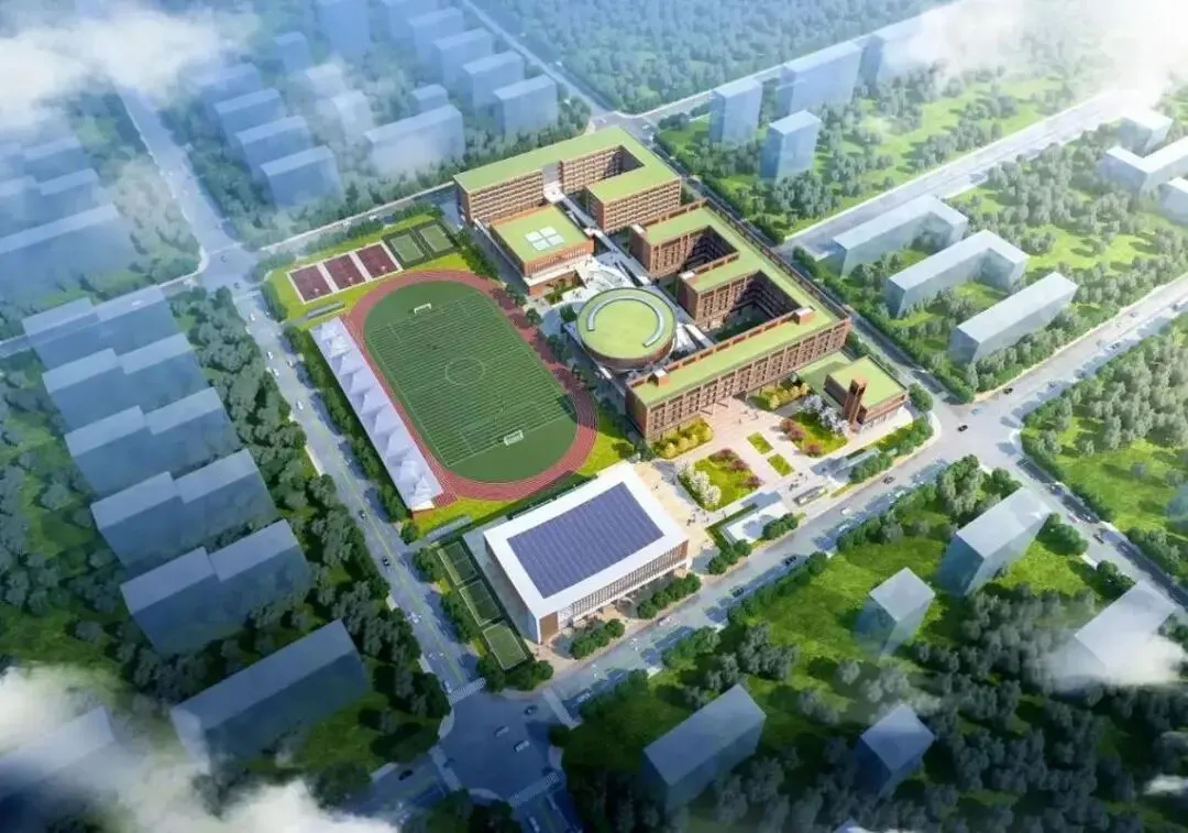 总占地123亩,建筑面积8.5万㎡,16轨48班,可容纳2400名学生