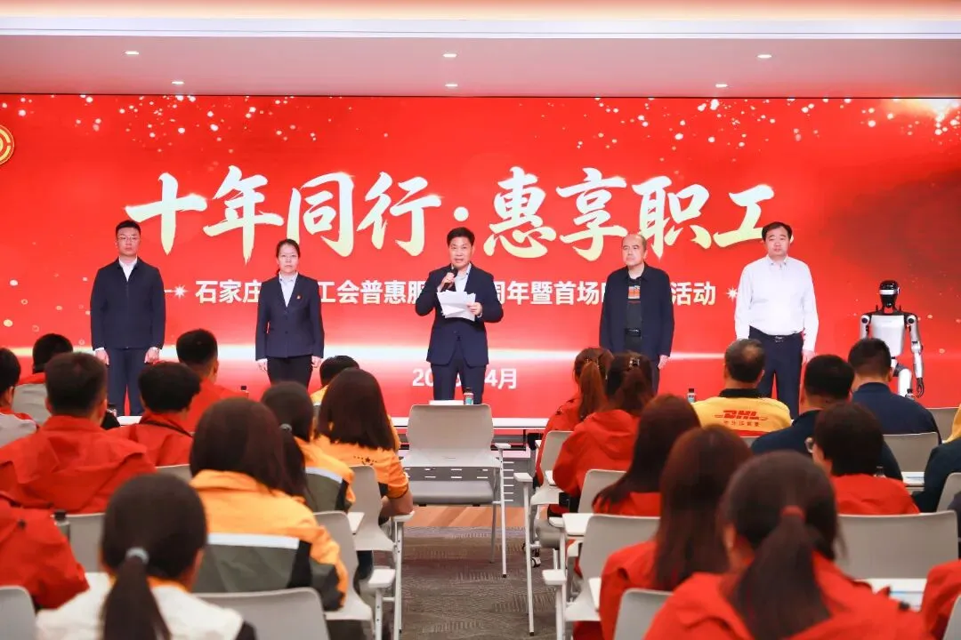 为深入贯彻落实关心关爱新就业形态劳动者工作要求,总结工会普惠服务十年成果,持续提升职工服务质效,2026年4月24日,石家庄市总工会“十年同行·惠享职工”普惠服务10周年暨首场暖“新”活动在河北省中旭绿色新能源集团有限公司隆重举行。