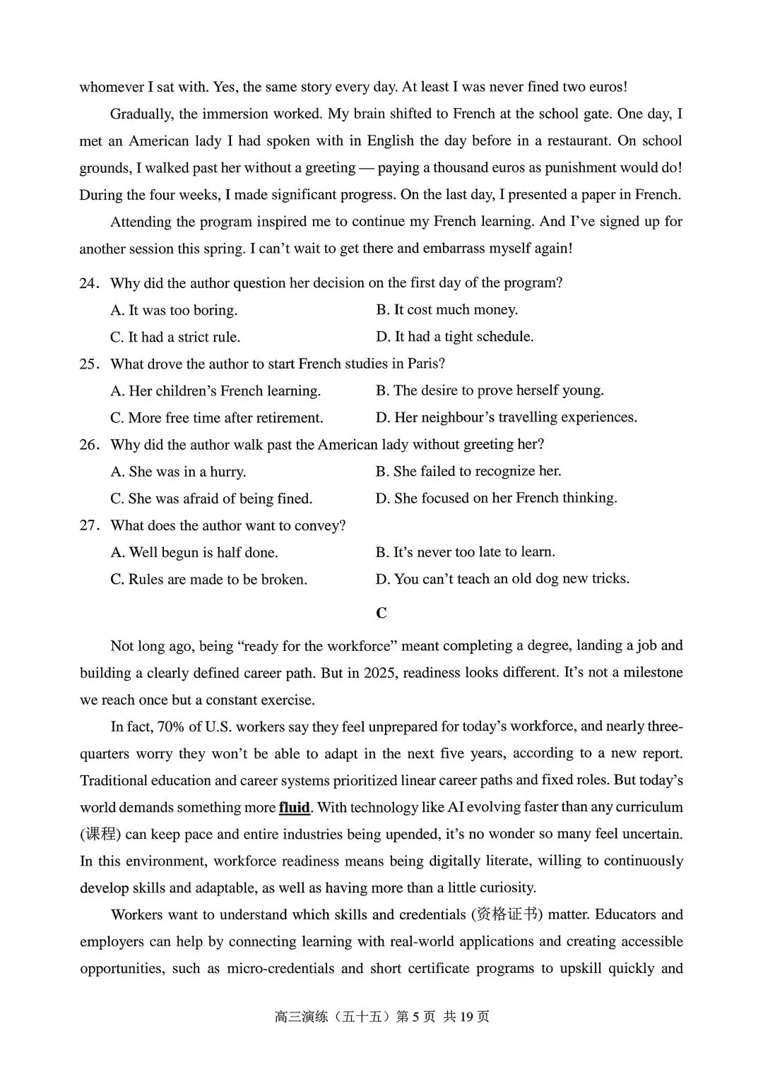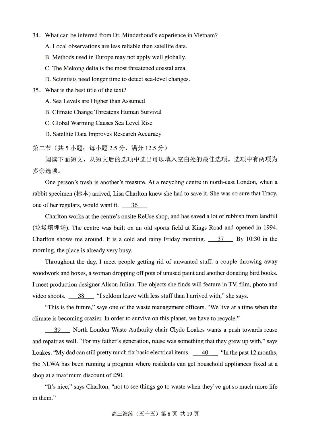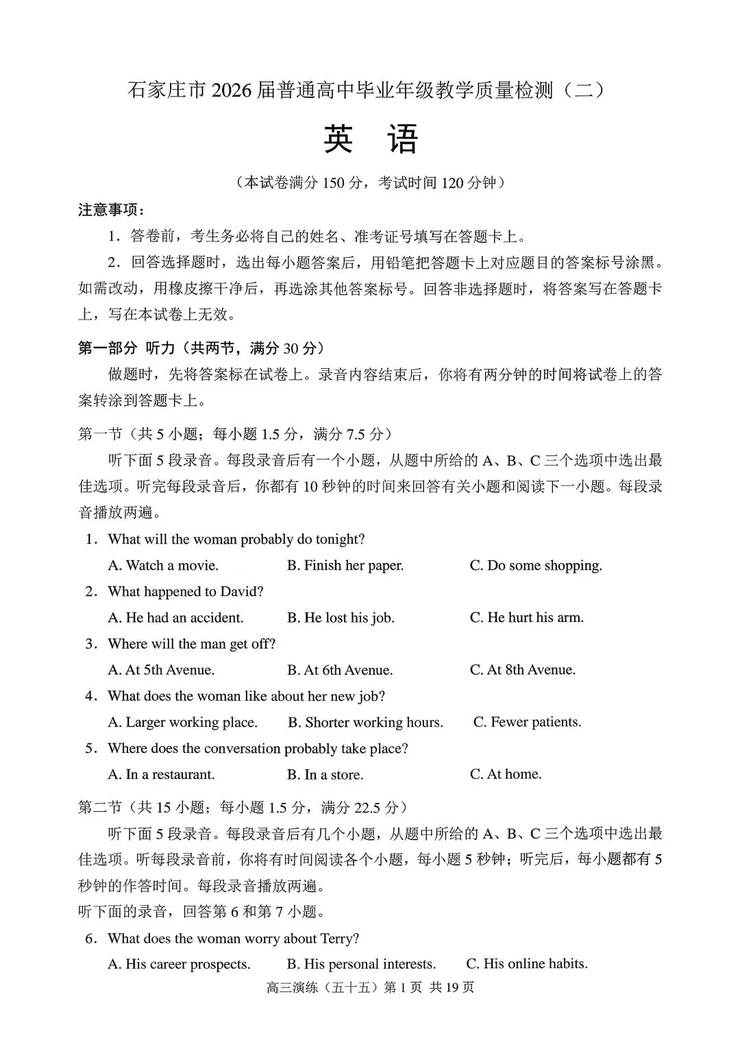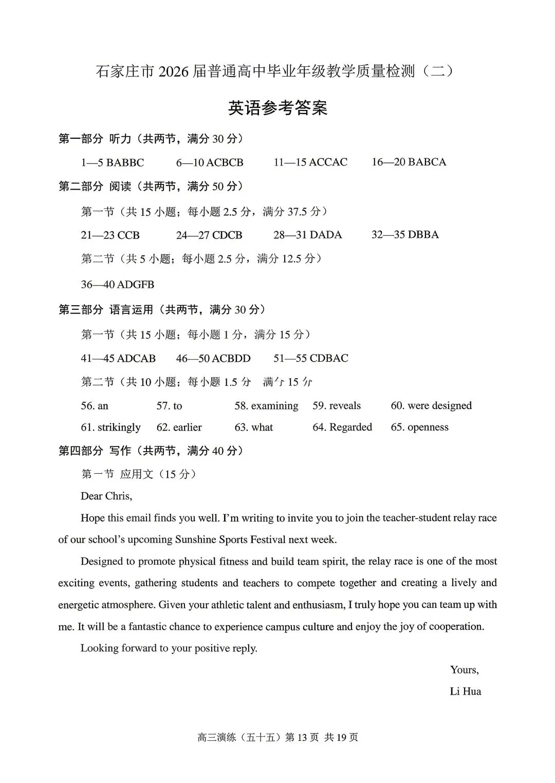 河北省石家庄市2026届高三二模英语试卷和答案
