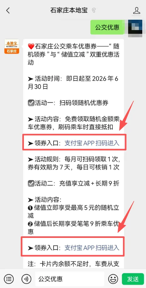 ✅也可关注【石家庄本地宝】公众号,私信回复【公交优惠】,即可获取领取入口