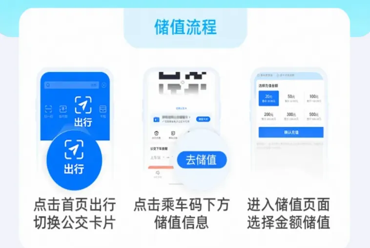 打开支付宝APP,点击首页“出行”→选择“公交码”并切换为“石家庄公交乘车码”→点击二维码下方的 “储值乘车”按钮→确认充值金额,立享立减优惠。