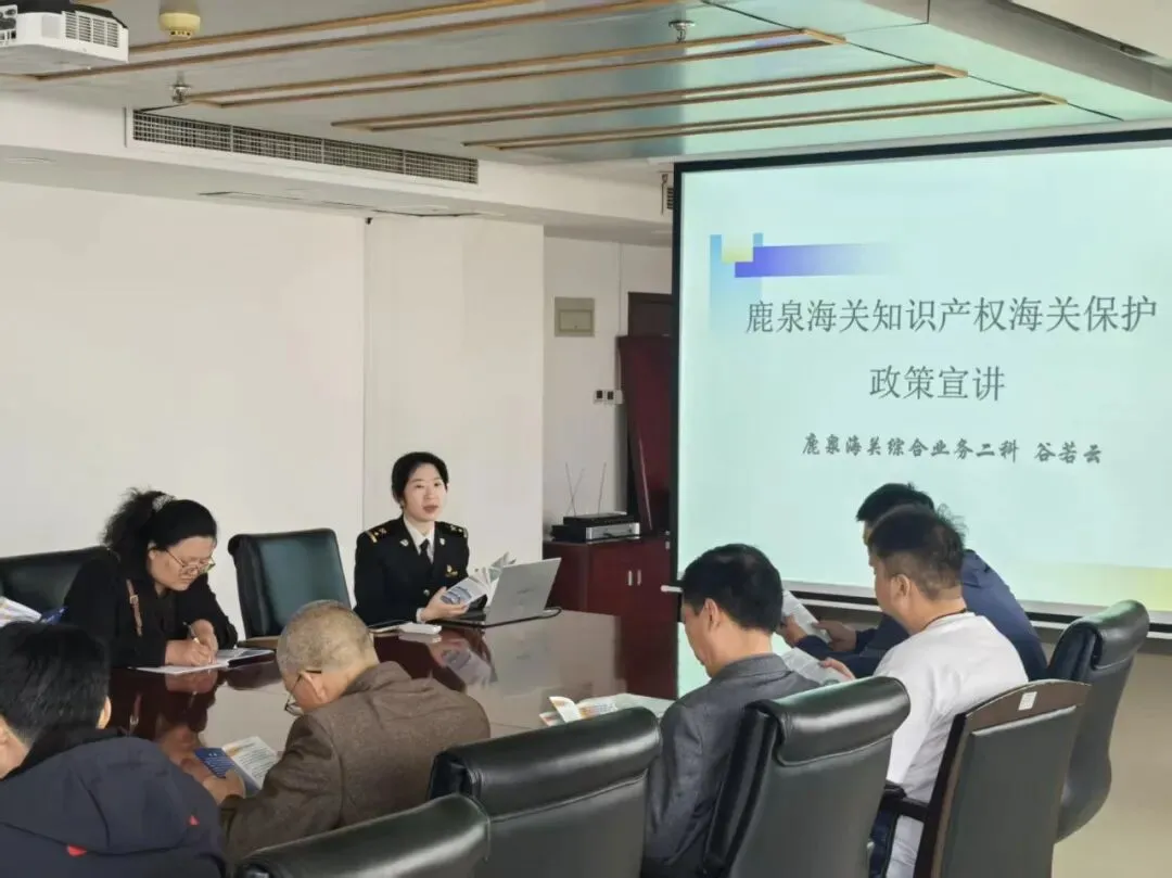 鹿泉海关针对辖区果品企业开展知识产权海关保护政策宣讲会,就企业知识产权备案流程及相关工作进行讲解。