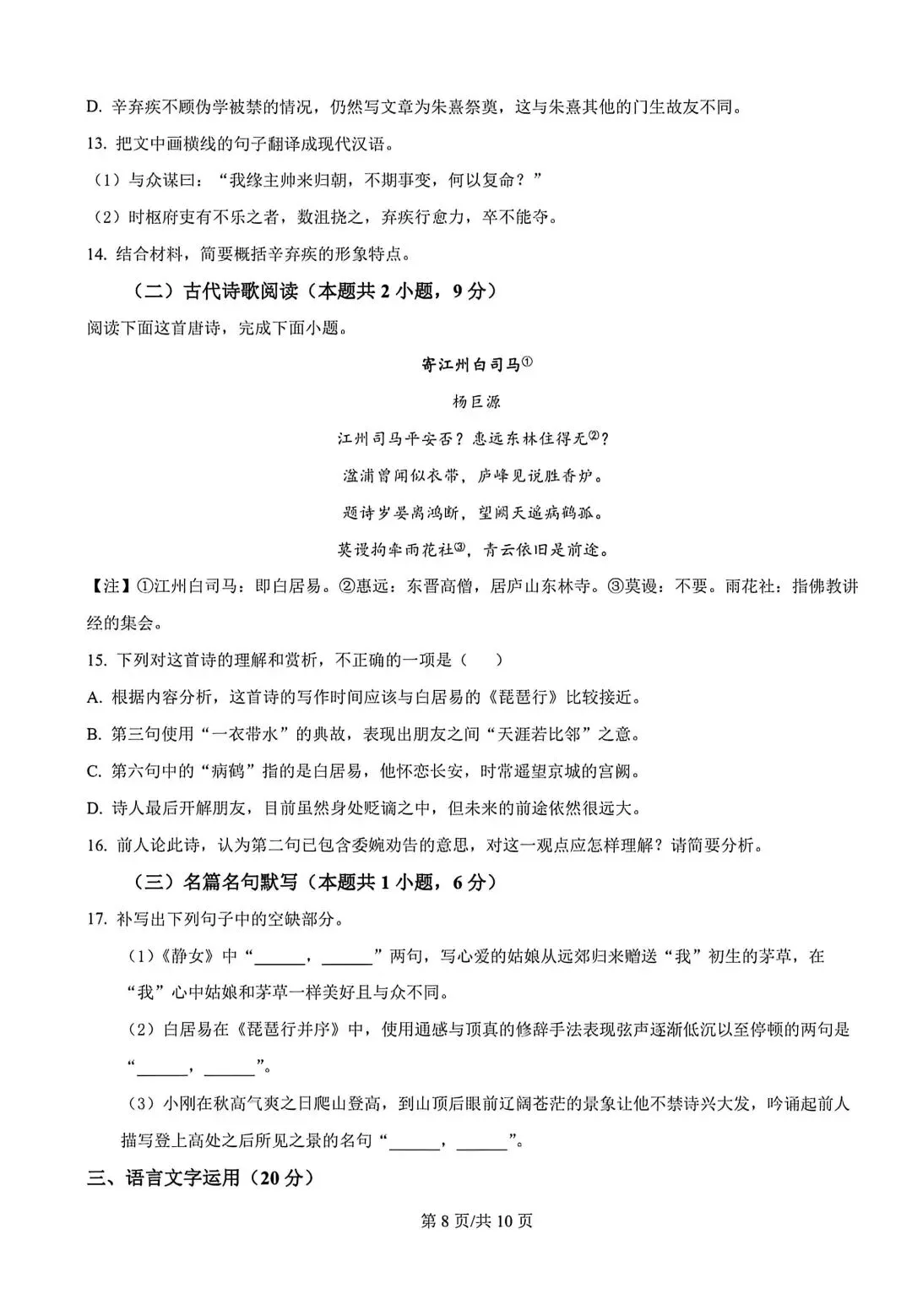 石家庄一中2026高三第二次模拟语文试卷及答案