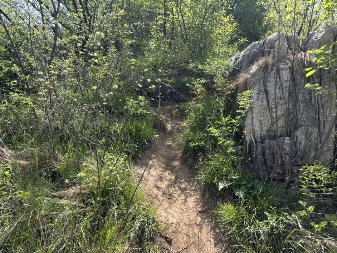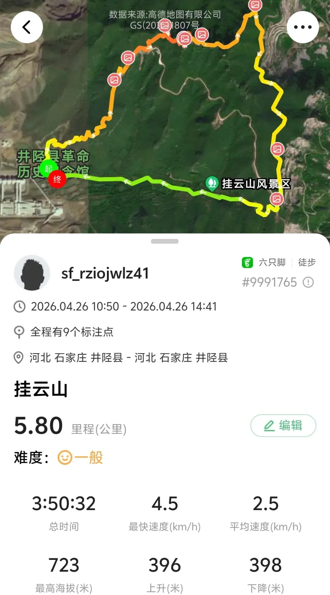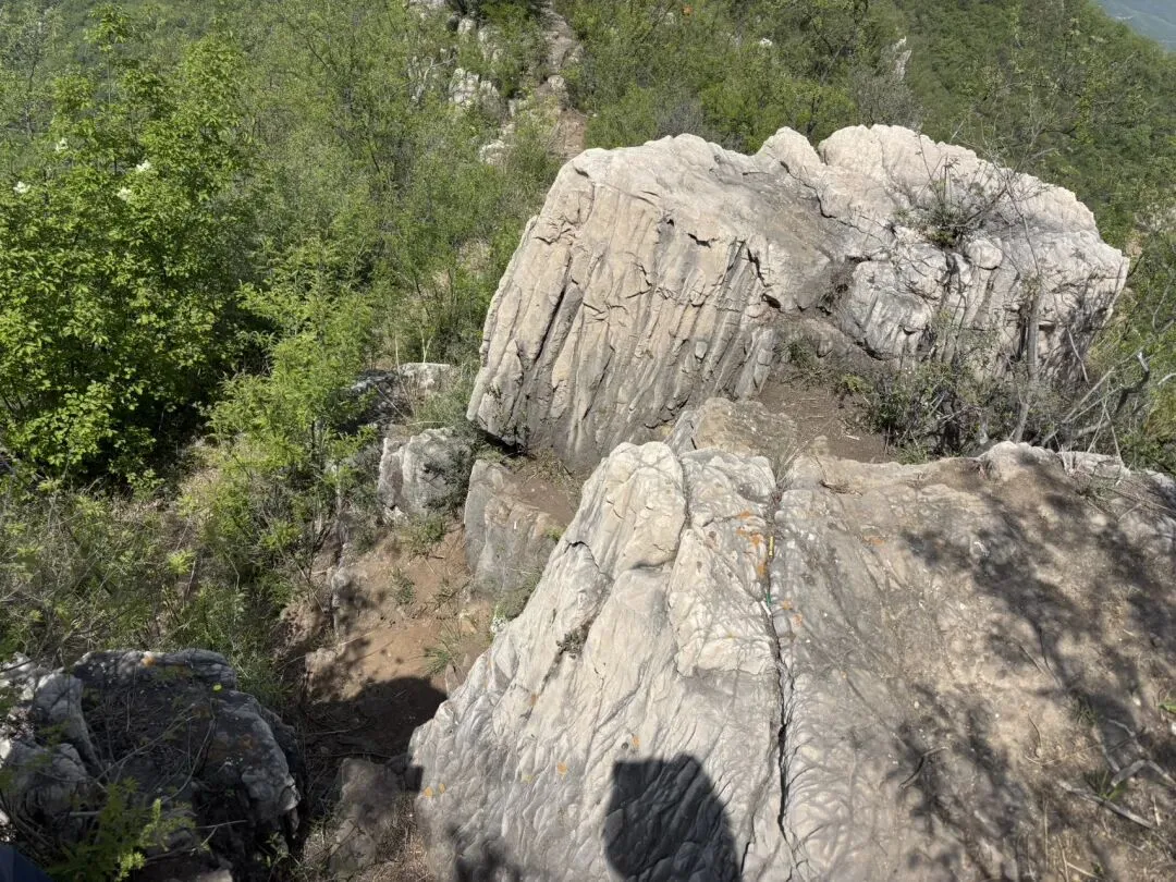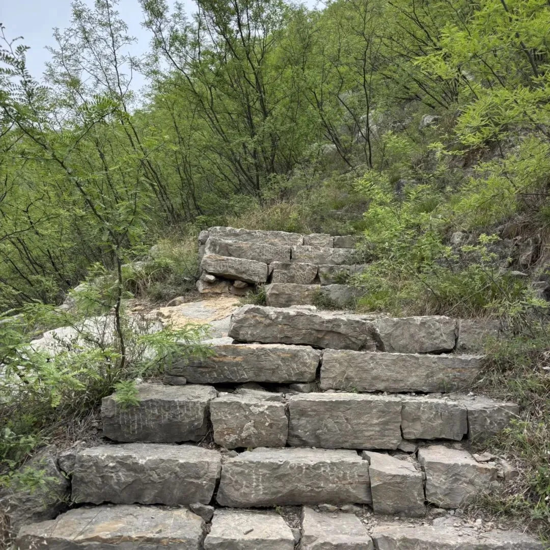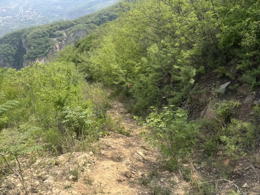 前半段路比较顺,后面会走乡道穿村,路会窄一些,但也都是柏油路。这座山免费不要门票,但进山前会进行防火登记。我们是10点半到的,我登记的时候前面都写了大半页纸的人名。直接开到烈士陵园,门前就可以停车。旁边还有卖炸串饮料的,可以先补给,因为山上很少有卖东西的了。这里有两条路线,一条是走陵园左侧小路直接徒步爬山(就是下图),另一条是走陵园对面柏油路开车上山,可以开到半山腰再开始爬。我们走的是第一个路线。这个季节刚好,山上很多花都开了,也不热。这个山植被都比较矮,沿路没有阴凉遮挡,再过俩月可能就比较晒了。上山难度很低,都是台阶路。但必须提醒一点,这里台阶两边是没有任何栏杆遮挡的,所以带小孩子来的话一定要非常小心,不然还是有些危险。这就是半山腰的平地,可以开车到这里。从山下爬上来的话,顺着柏油路走就可以了。走十分钟就能到这个雕塑处,这里也有卖烤肠饮料的。挂云山是座红色之山,有六名烈士为了抗日在此跳崖。再往上爬会看到壮士跳崖遗址,地势很险峻,视野非常开阔。这里面是可以吃饭的地方,旁边也有几处庙观。饭就是馒头大锅菜、泡面,有热水供应。我俩一人吃了一桶泡面,一桶十块钱。到了这里就登顶了,算上吃饭歇脚差不多也就1个半小时。建议在此休息好,就原路返回,这样整个行程是相对轻松容易的,可以称得上“零难度”。我们没有原路返回,而是跟着六只脚(一款徒步app)走的环线。接下来的路线,非常不建议没有徒步经验的朋友参考,我接下来写的,就和“零难度”无关了,大家看看就好。吃完饭后我们沿着这个指示牌下山,其实一开始感觉还行,也都是台阶路。但没走几步就不对劲了,因为眼前全部都是下面这种路。还要攀爬这样的石头路。路况不好,但我们没有返回,是因为我们按着六只脚线路在走,心里多少是有底的。但仍然非常不建议小白朋友们走。在下山的将近2小时里,全程都是下图这种路,而且我俩没有碰到其他任何人。其实这个路不难走,但因为只有我俩,我很怕遇到什么动物,所以精神还是有些紧张的。当然,饭搭子就很享受这种荒野原生态的乐趣。最后走完了野路,重新回到了柏油路。沿着公路走了二十来分钟,就回到了停车场。这是我们的路线。全程5.8公里,走了将近4个小时。感兴趣的朋友可以去六只脚看看,号码是9991765。但注意安全,当心神秘园警告。当然,一般的周末休闲,朋友们上山下山走一条主路就可以,全程台阶路,也就两三个小时走完全程,锻炼身体也看风景。