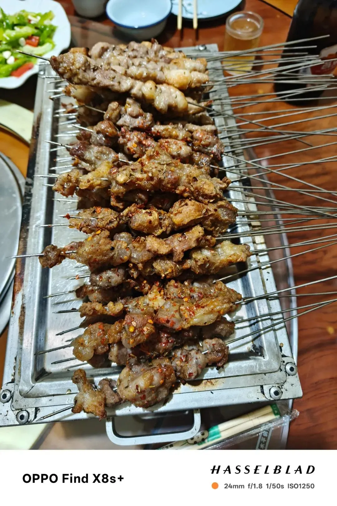 吃的时候,又发现了一个金属签子的好处,那就是可以轻松的把肉从签子上撸下来,放到盘子里慢慢吃。