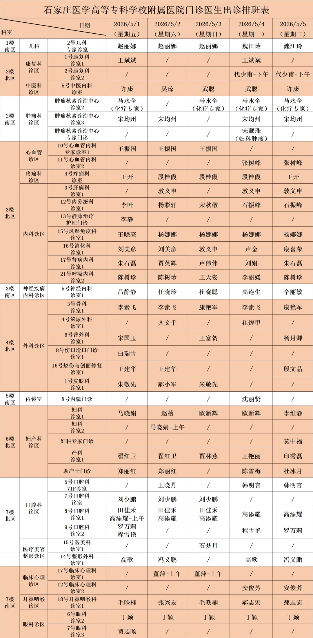 五一健康护航不打烊--石家庄医学高等专科学校附属医院五一假期门诊医生排班表
