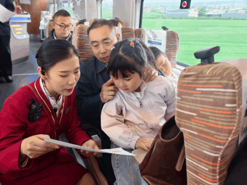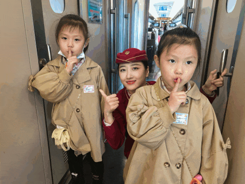 4月22日,高铁二队京太19组值乘G606次列车,针对儿童、研学团体增多的实际情况,开展“文明小乘客”主题引导活动。乘务人员宣讲文明乘车与安全注意事项,为小朋友发放纪念贴画,柔性引导文明出行,携手家长与研学团队,共建安静有序的和谐旅途。(高铁二队 牛冰冰)