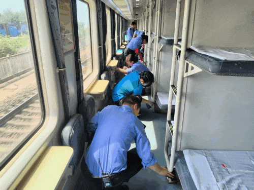 4月24日,京襄车队京襄5组值乘K7708次列车,班组利用作业间隙对新加挂列车开展集中卫生攻坚,规范张贴标识标牌,清除胶渍污垢,深度刷洗地面、清理卫生死角,逐项整改薄弱环节,全面提升车厢环境卫生质量。(京襄车队 廉桐)