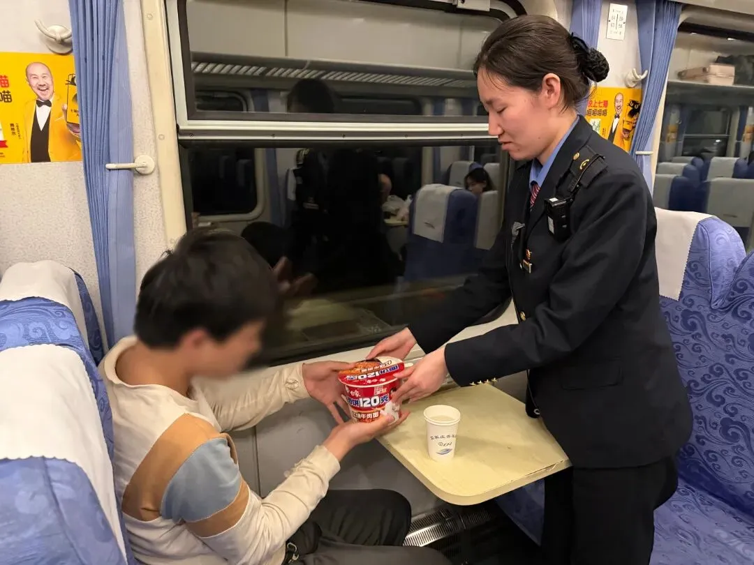 4月21日,秦邯车队秦3组值乘K7732次列车,班组及时帮助寻找离家出走的未成年旅客,耐心安抚旅客情绪,提供食物,途中重点关注、细致看护,旅客家属对班组高效贴心的服务表示衷心感谢。(秦邯车队 邢成彤)