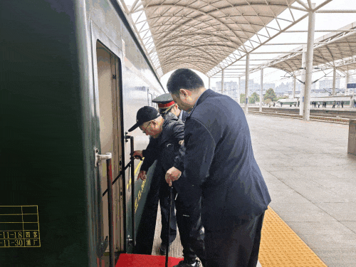 4月18日,京洛车队洛2组值乘K7701次列车,班组发现重点旅客后,主动上前搀扶,帮助搬运行李,用贴心举动解决旅客出行难题,温馨服务获得旅客称赞。(京洛车队 张萌萌)