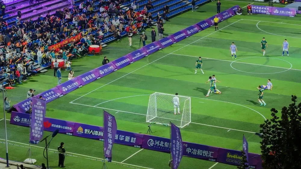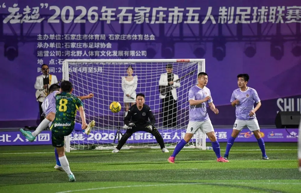 SJZGA队球员李小雨(右一)在比赛中射门。 新华社发(张晓峰摄)
