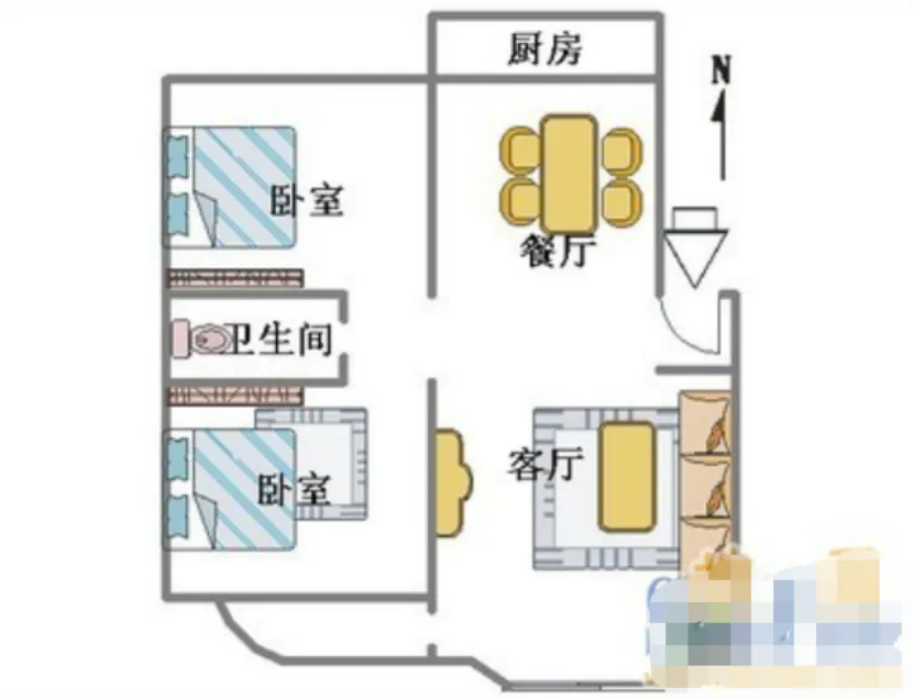 2 室 1 厅 1 卫 约 80㎡