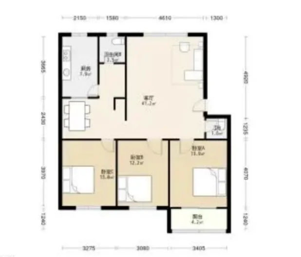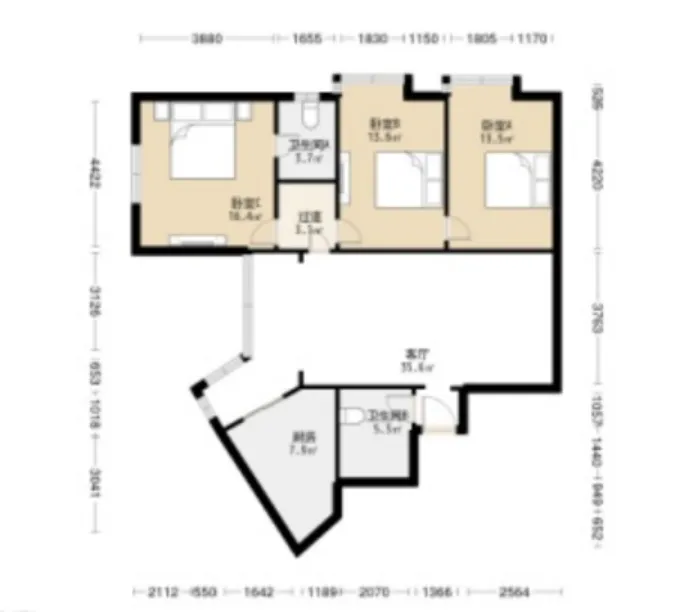 3 室 2 厅 2 卫 约115㎡