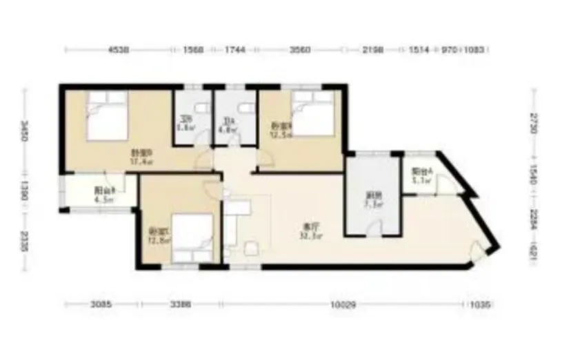 3 室 2 厅 2 卫 约118㎡