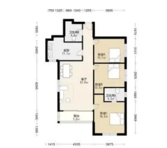 3 室 2 厅 2 卫 约125㎡