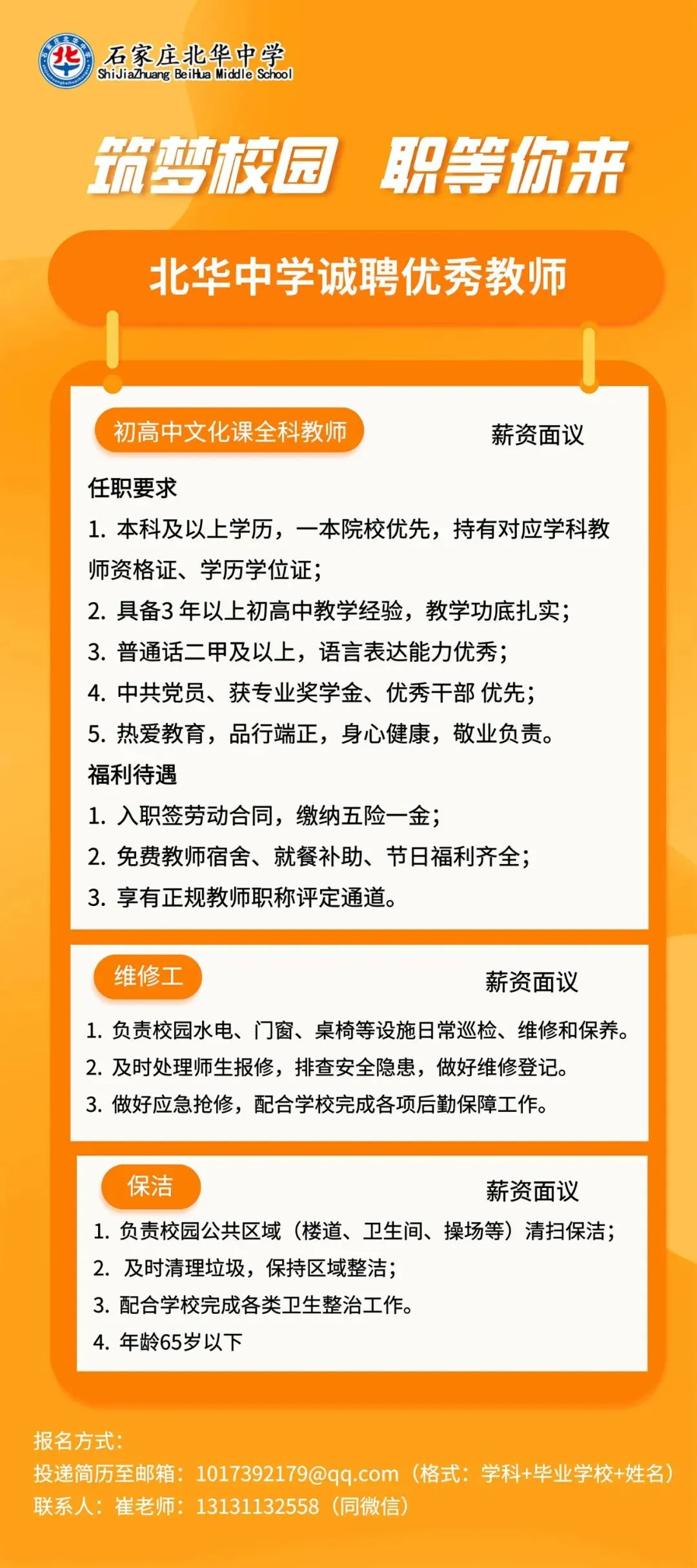 (3)特级教师、省市级优秀班主任、省市级名师、学科带头人、博士研究生等高层次人才可直接拨打电话0311-85906660进入人才绿色通道。
