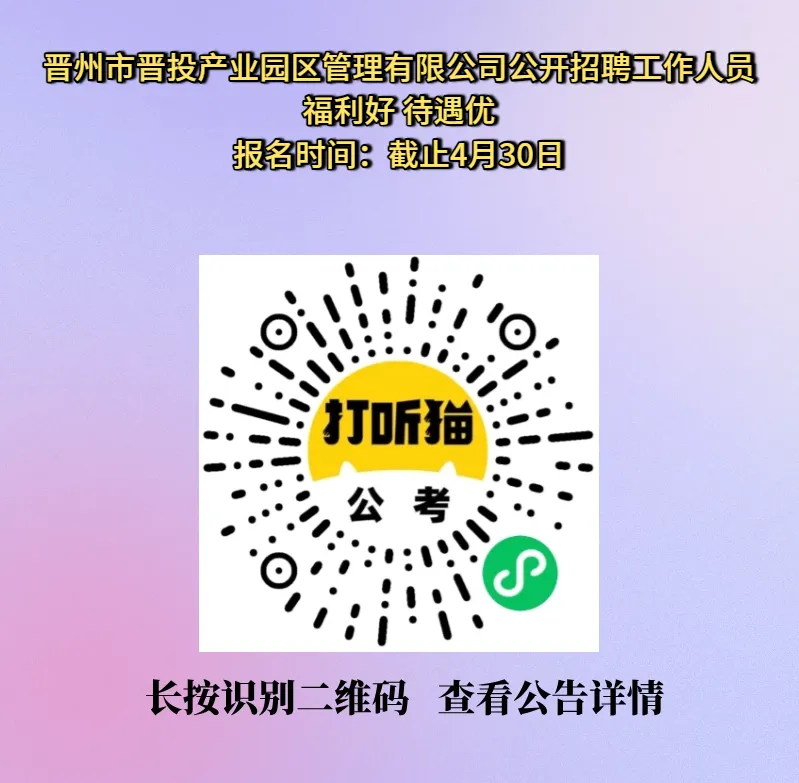 >【石家庄招聘】晋州市晋投产业园区管理有限公司公开招聘工作人员!