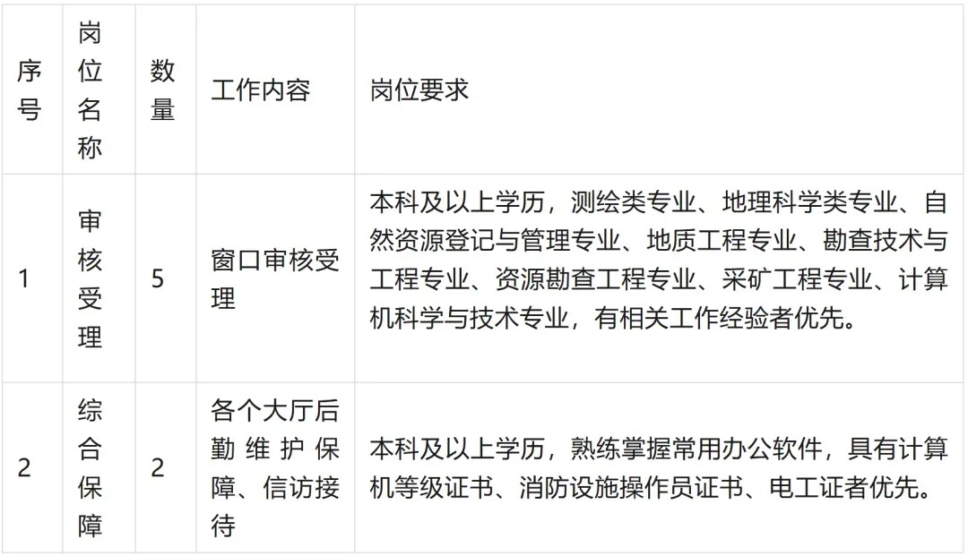 根据工作需要,现面向社会公开招聘劳务派遣工作人员7名,有关事项公告如下: 招聘工作坚持德才兼备、以德为先的用人标准和公开、平等、竞争、择优的原则。 本次招聘岗位为石家庄市不动产登记中心受理审核岗位及后勤保障岗位,招聘人数、资格条件等内容详见下表: 5.年龄在18周岁及以上、35周岁及以下(1991年4月22日至2008年4月21日期间出生); 7.具备与招聘岗位要求相适应的年龄、学历等条件(详见岗位信息表),国外留学生须出具教育部留学服务中心认证的学历认证书。 1.报名方法:采取网上报名、资格初审、网上缴费、网上打印准考证等方式进行。每名考生限报考一个岗位。 报名时间:2026年4月22日16:00至4月29日16:00 网上资格审查截止时间:2026年4月29日16:30 报名网址:诚才网(http://www.51chengcai.cn) 2.资格初审:依据招聘岗位设置的条件进行资格初审,通过资格初审的考生,请查看报名状态,确保成功报名。 (1)考生开始报名前,须完全了解本次招聘政策和拟应聘岗位条件,同意《诚信承诺书》后按步骤进行具体操作。 (2)网上报名实行严格的自律机制,必须承诺履行《诚信承诺书》,对提交审核的报名信息的真实性负责,在招聘各环节发现报考者存在不得报考的情形或不符合报考资格条件的,取消应聘资格。 (3)上传的电子照片要符合要求,否则将被报名系统自动拒绝。考生照片要求:近期白底证件照,应光线均匀、正面、无PS美颜、无遮挡、免冠;jpg格式,295×413像素,80kb以下。 (4)考生“提交审核”后信息将被锁定,在未反馈审核结果前不能修改。一般情况下,审核员24小时内会在报名系统上回复审核结果。“审核未过”的,可根据提示的未过原因,修改信息或改报岗位并重新提交审核;“审核通过”的,将不能再修改,即完成报名。 (5)考生务必牢记报名截止时间、打印《准考证》时间、笔(面)试时间等重要时间信息。凡是在规定时间未完成相关操作的,将被视为自动放弃。同时,报名和考试期间务必保管好个人的证件和信息,因个人原因造成丢失、被他人盗用和信息被恶意篡改而影响报名和考试的,责任自负。 (6)准考证打印:准考证打印时间将在网上报名系统另行公告,请密切关注,并按公告明确的时间打印准考证,逾期者责任自负。 (7)报名缴费只能通过网上支付,报名考务费每人100元。 1.笔试准考证打印。考生完成网上报名后可进入网上报名服务平台(http://www.51chengcai.cn)下载打印《笔试准考证》(A4纸张,黑白,彩色均可),逾期没有下载打印《笔试准考证》的,视为自动放弃笔试资格。《笔试准考证》载明笔试的时间,地点和参加考试有关要求。笔试时,考生须持第二代居民身份证,自行打印的《笔试准考证》,方能进入考场。 2.笔试时间和地点。请考生按照笔试准考证上明确的时间、地点按时参加笔试。 3.笔试。笔试采取闭卷方式,满分100分。考试内容包括公共基础知识、时事政治。不指定考试用书及教材。 4.笔试成绩公布。笔试结束后,考生可登录网上报名服务平台进行查询。对考生笔试成绩在同岗位内由高至低分进行排名,按照进入面试人数与招聘岗位数3:1的比例确定进入面试人员名单,最后一名笔试成绩并列的一同进入面试。笔试有作弊行为的考生不得进入面试。 1.面试准考证打印。进入面试的考生登录网上报名服务平台(http://www.51chengcai.cn)自行打印《面试准考证》。 3.面试成绩公布。面试成绩满分为100分,合格分数线为60分。 面试结束次日10点后,考生可登录网上报名服务平台查看个人综合成绩和是否进入体检。 4.综合成绩计算。笔试和面试结束后,将笔试、面试成绩按照比例加权后确定考生的综合成绩。综合成绩计算方法:综合成绩=笔试成绩x40%+面试成绩x60%. 5.确定进入体检人员。对报考同一岗位的考生按综合成绩从高到低进行排名,按照参加体检人数与招聘岗位数不高于1:1的比例确定进入体检人员名单,并在网上报名服务平台公布。比例内末位考生综合成绩如出现并列,按以下顺序确定进入体检考生:笔试成绩高者,退役军人,烈士子女或配偶,学历较高者,基层工作经历较长者。 体检标准按照《关于修订(公务员录用体检通用标准(试行)〉及(公务员录用体检操作手册(试行)>有关内容的通知》(人社部发〔2016〕140号)有关规定执行。体检时间和地点另行通知。 对体检合格者政治思想,道德品质,工作能力和现实表现等进行考察。被考察人员应配合提交考察工作所需的相关材料。 如有体检,考察不合格或自动放弃人员,按照综合成绩排名在同岗位同一面试组内参加面试的考生中依次递补。 对考试、体检、考察均合格人员在网上报名服务平台公示5个工作日。经公示无异议的,按有关规定签订劳动合同,并办理相关手续。对公示反映有问题并查有实据,不符合录用条件的取消其拟录用人选资格,对反映有问题但一时难以查实的,暂缓录用,待查实并做出结论后决定是否录用。 录用人员按相关政策规定实行试用期制度,试用期一并计算在劳动合同期限内。试用期满考核合格的,予以正式录用;不合格的,取消录用。 若在招聘过程中有任意一环节出现弃权或不合格人员,将依据前一轮考试成绩排序依次进行递补。 1.本次招聘实行诚信报名机制,考生须对个人填报信息和提供材料的真实性负责。资格审核贯穿招聘工作全过程,在任何环节发现考生不符合招聘条件的,一经