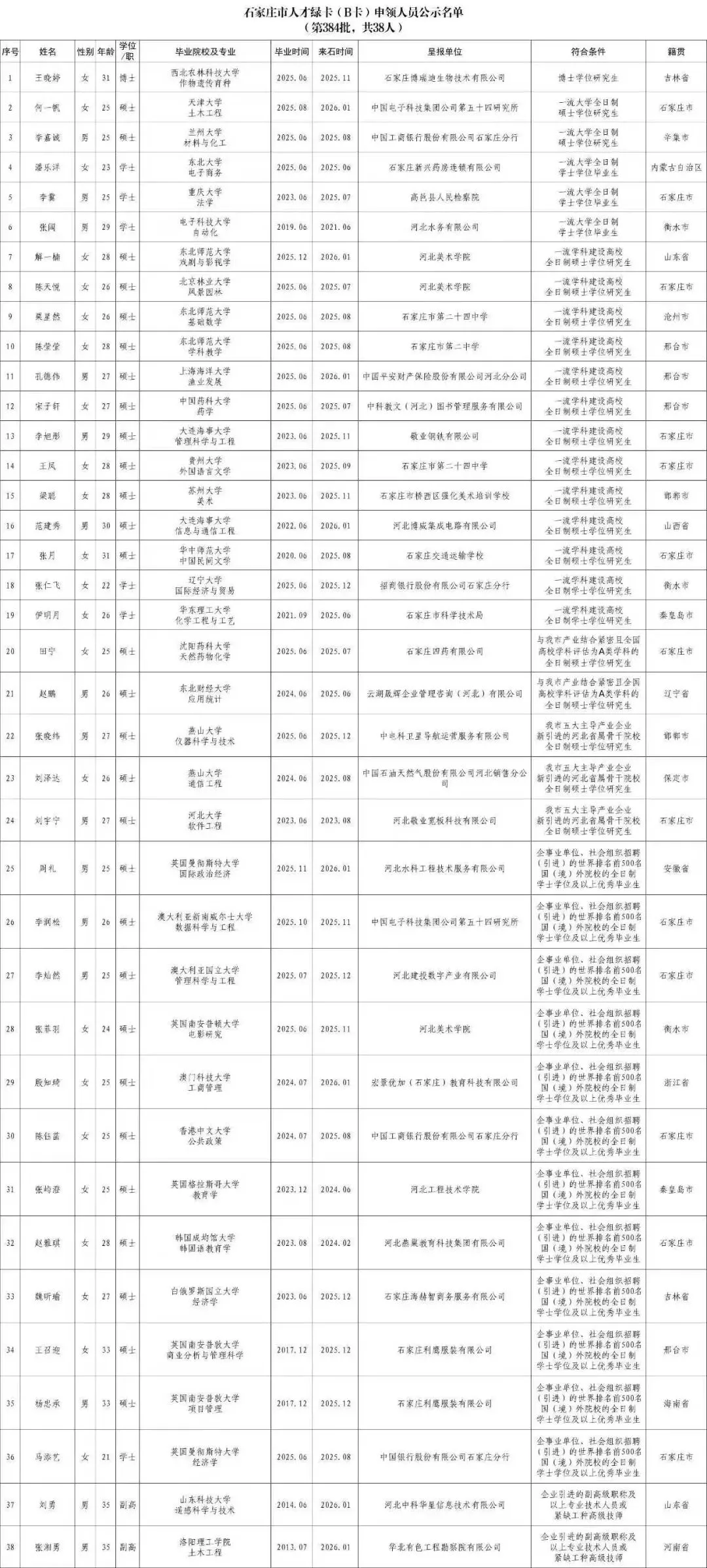 根据《石家庄市人才绿卡(B卡)管理办法(试行)》规定,经过本人申请、网上预审、单位审核、资格复审,拟为申请对象发放人才绿卡(B卡)。
