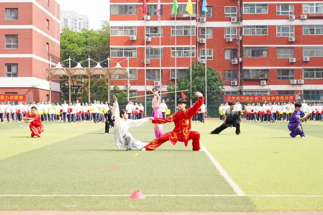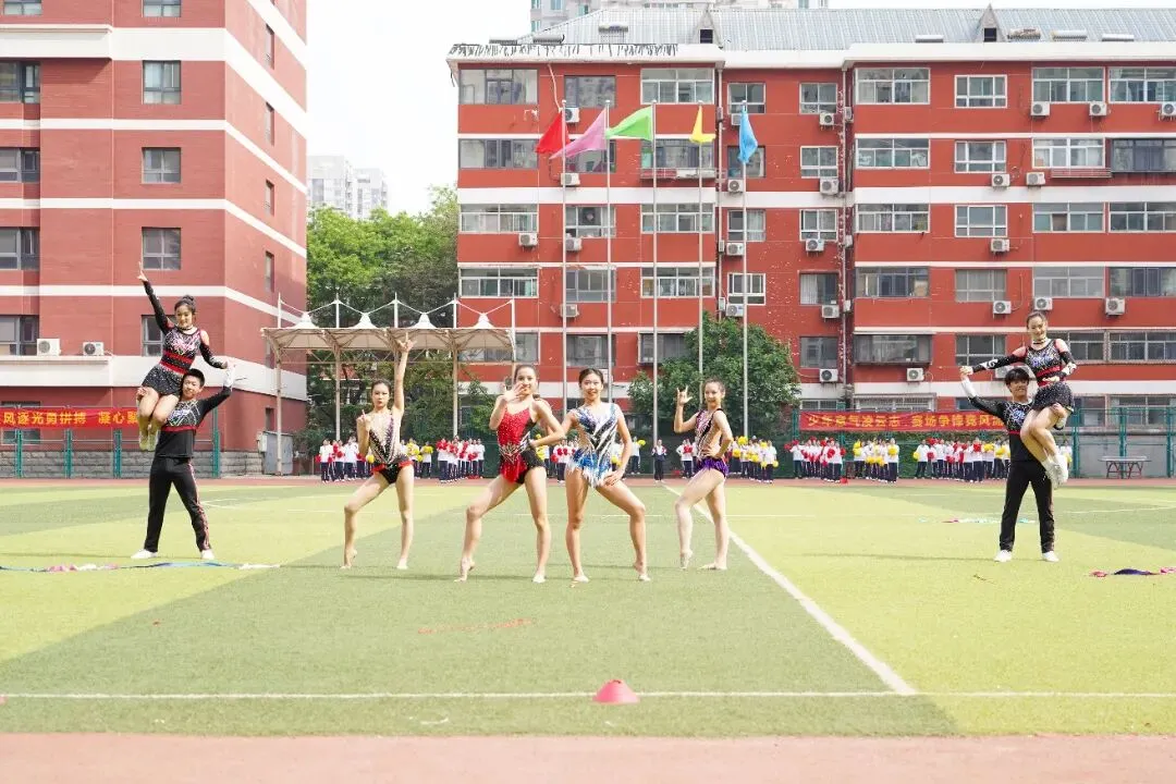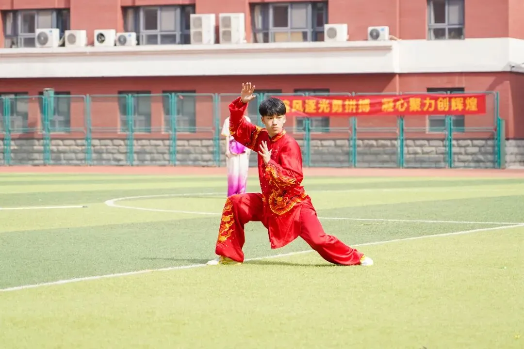 健美操、艺术体操《聚力绽放》率先登场,力与美完美交融;舞冕之王社团《Cheer up》热情四射,点燃全场气氛;武术队《功夫少年》拳风虎虎,刚劲有力,尽显中华武魂;高一级部花球《奔跑的青春》队列整齐、动作划一,将团结与活力演绎得淋漓尽致。四场精彩表演,燃动全场!