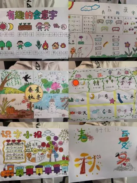 识字小达人・图文创想,孩子们制作汉字卡片、创意插画、象形字手抄报,字中有画、画中有字,趣味识字。