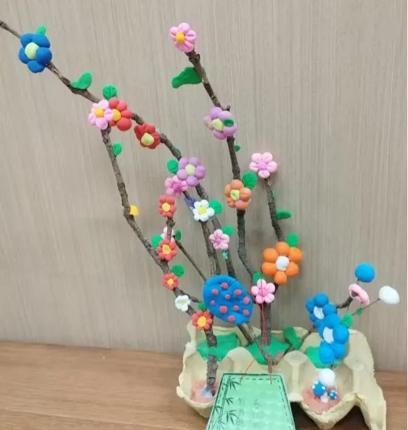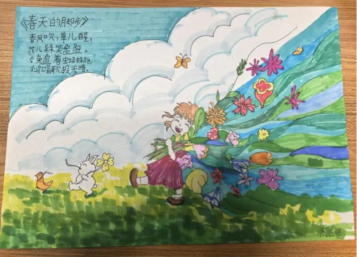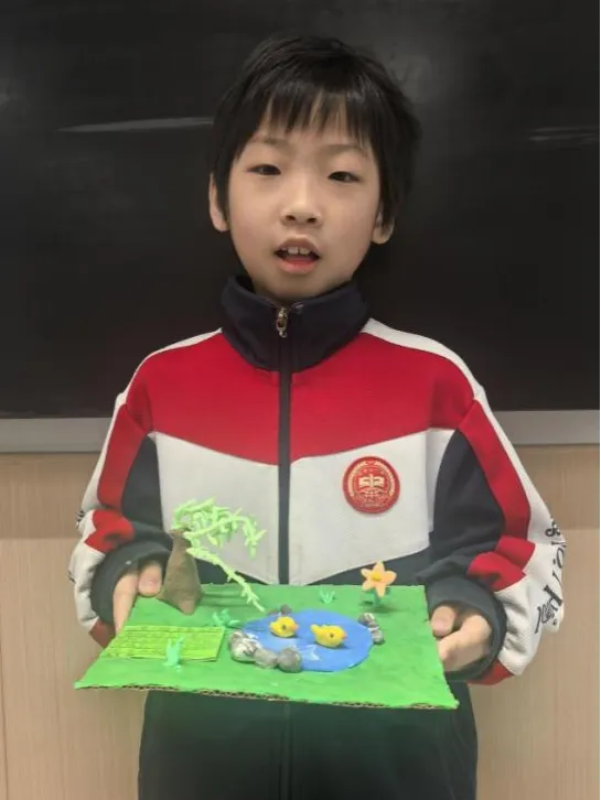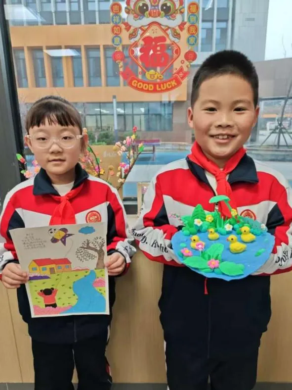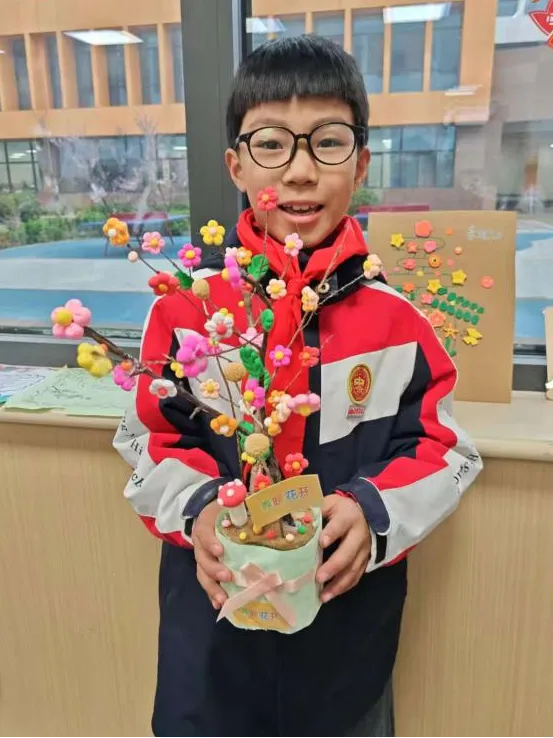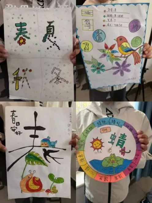 二年级语文学科则以春天为主题,孩子们用黏土、画笔创作,把春天握在手中、画在纸上。黏土花朵、春日绘画、童诗创作……用创意定格浪漫春光,在实践中提升语文素养。