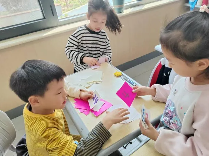 卡牌大作战・玩转数学,孩子们带着自己制作的卡牌,迫不及待地进入游戏环节。老师精心设计了三个层层递进的数学游戏,让知识在欢声笑语中自然巩固。