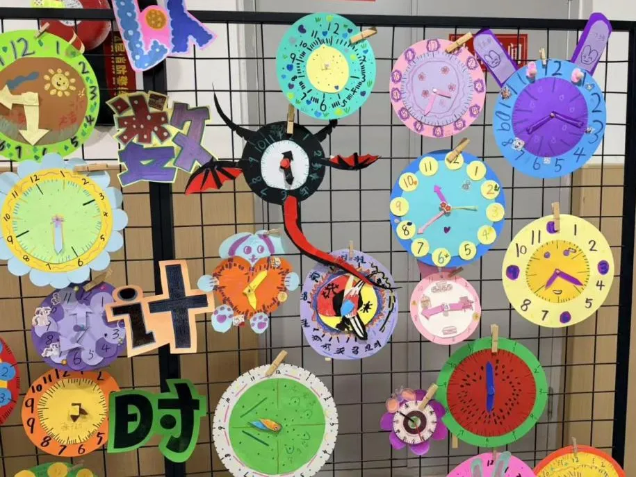 制作时钟,学以致用从拆分零件到组装成型,从标注刻度到拨动指针,孩子们全程亲手操作。一边对照数学知识校准时间,一边用心完善美术细节,在制作过程中深化对“时、分”的理解,真正做到学中做、做中悟,让知识落地生根。一个个精美时钟,让孩子读懂时间、珍惜时光。