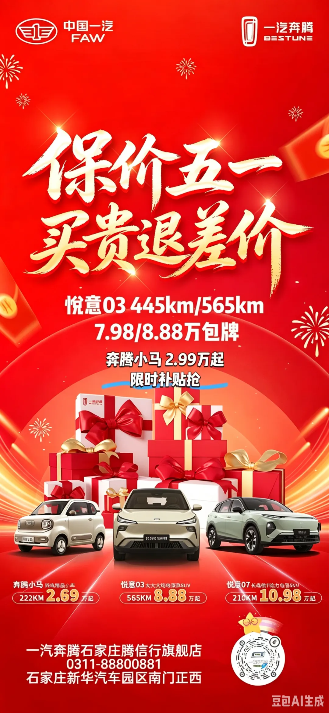 一汽奔腾石家庄腾信行旗舰店直接放大招:保价五一,买贵退差价!