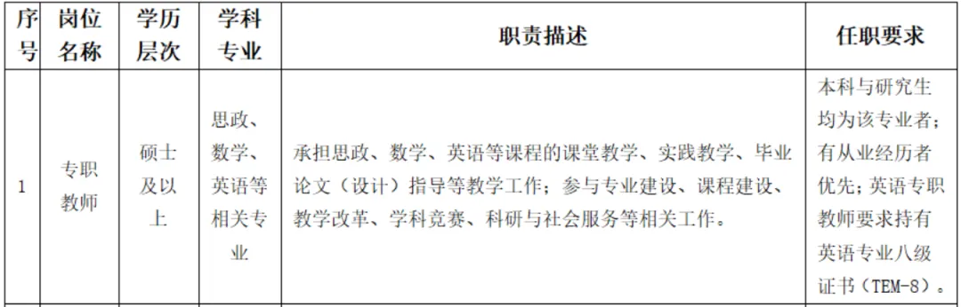 【山东|烟台】硕士进大专 | 烟台公办职业学院公开招聘 英语专任教师 专八优先报名 | 应往届均可报名 4.29报名截止