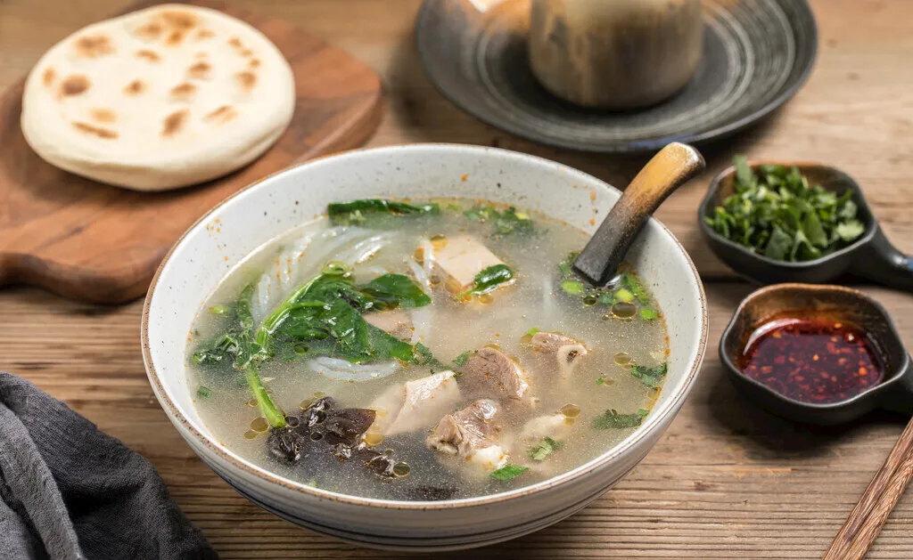 马记的胡辣汤用料实在,羊肉给得足,面筋是自己洗的,黄花菜提前泡发,汤熬好了再打入蛋花,最后撒上香菜和胡椒粉,这一碗汤端上来,热气腾腾,香味扑鼻,喝一口辣得你直吸气,但停不下来,配上烧饼或者油条,这是石家庄人冬天早上的标配。