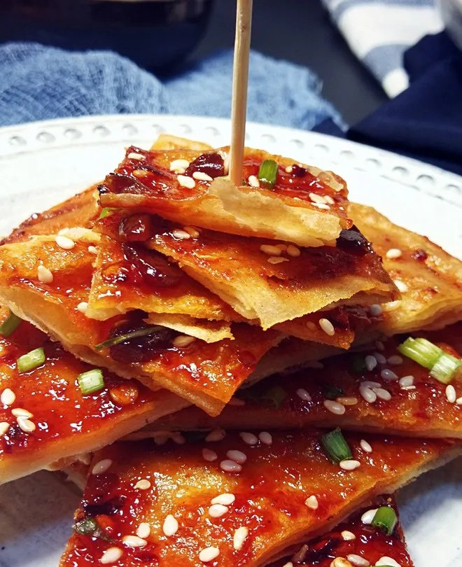 饼是现擀现烤,擀成薄薄一层,刷上一层酱料,撒上芝麻和葱花,放进炉子里烤,烤到饼面起泡,酱料咕嘟冒泡,那个香味能飘出去几十米,这种香不是香精能模仿的,是酱料在高温下发生的梅拉德反应,是化学和物理的双重作用。