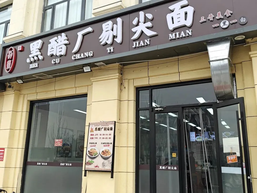 店名:黑醋厂剔尖面,位置在塔北路与建通街交口东南角,距离孙村地铁站不算远。