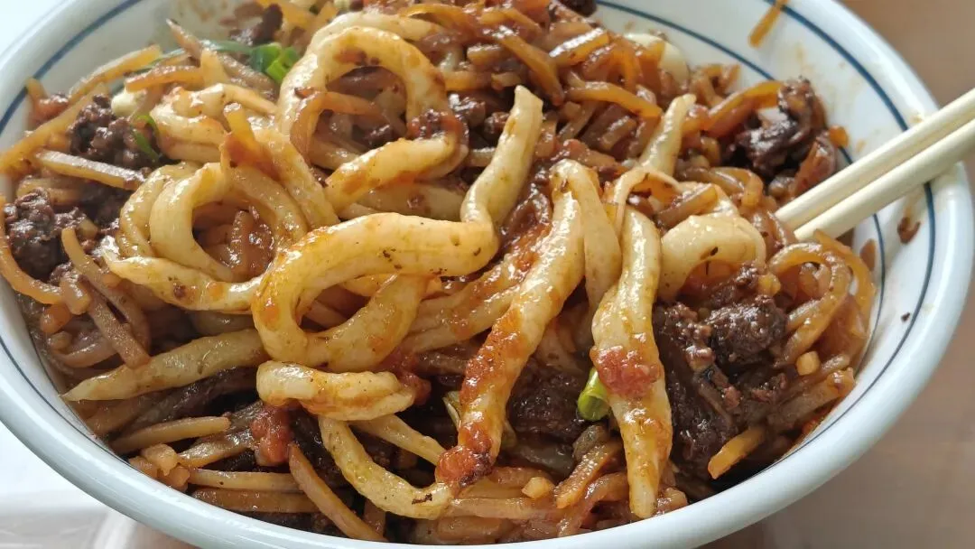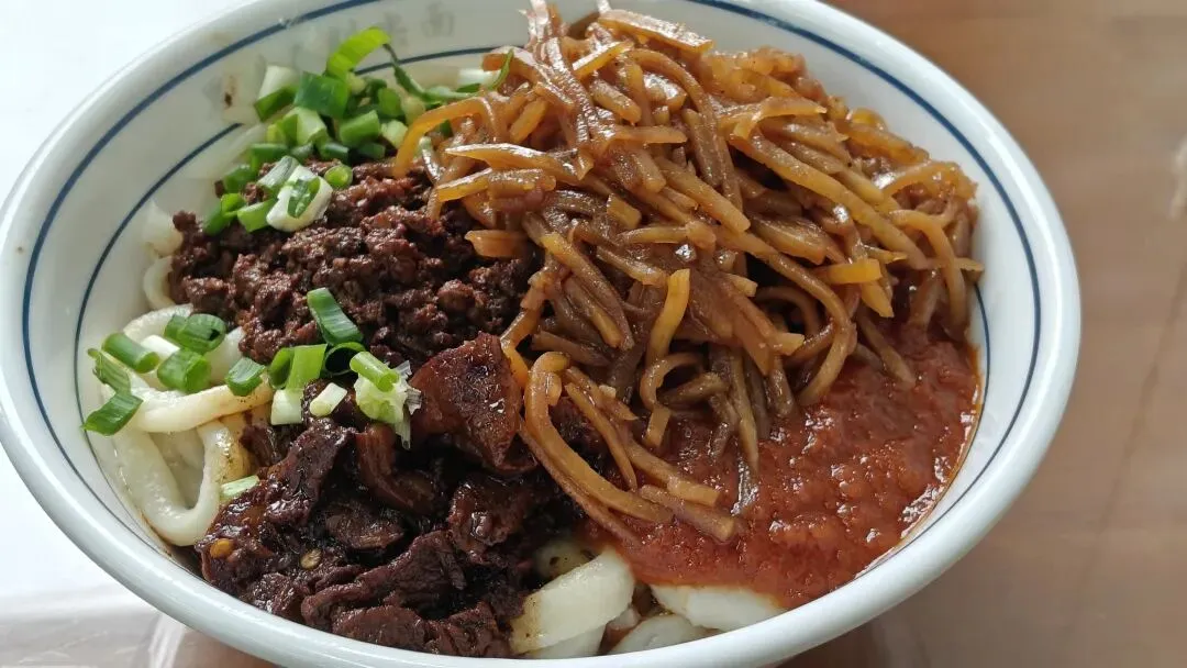 我点了一碗肉酱剔尖,除了肉酱之外,还可以放土豆丝、西红柿酱。