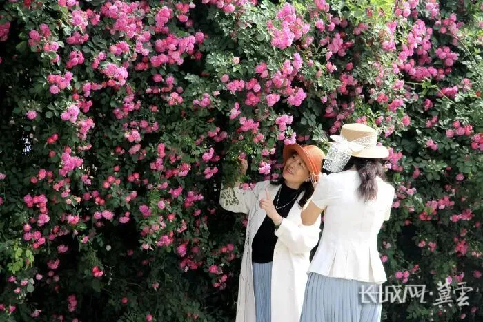 蔷薇花墙吸引了不少市民游客前来观赏。石家庄市园林局园林绿化管护中心供图