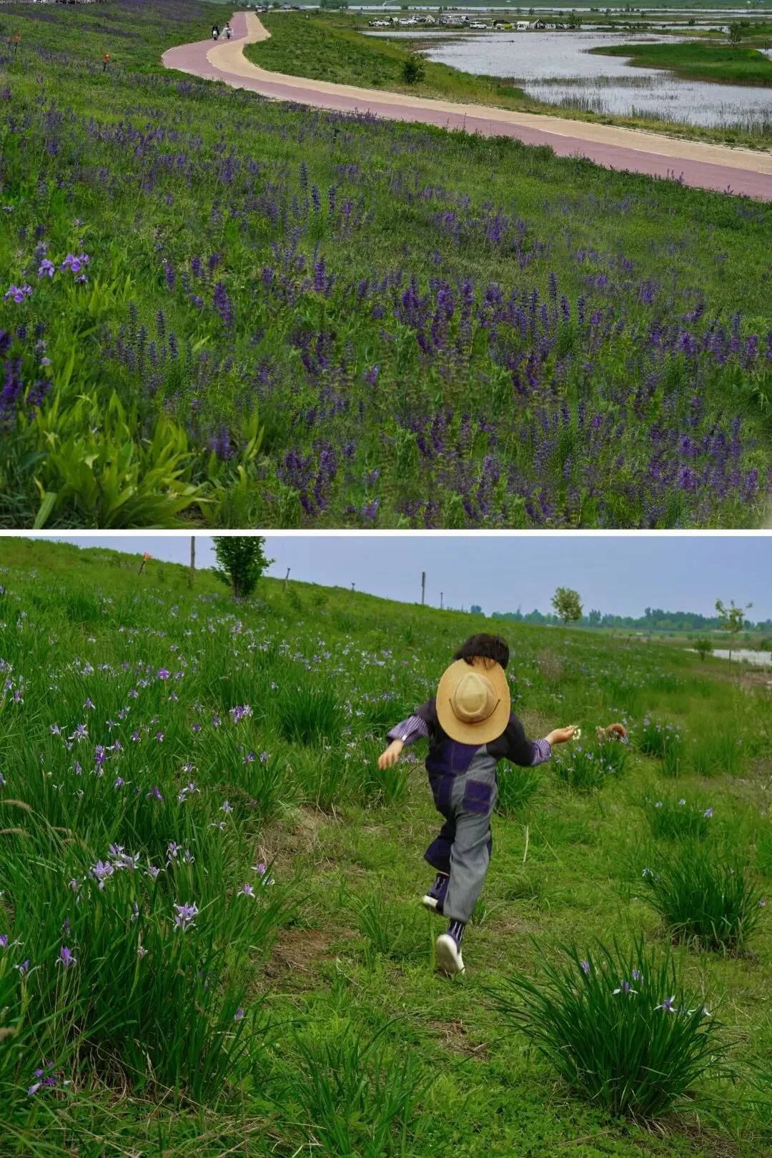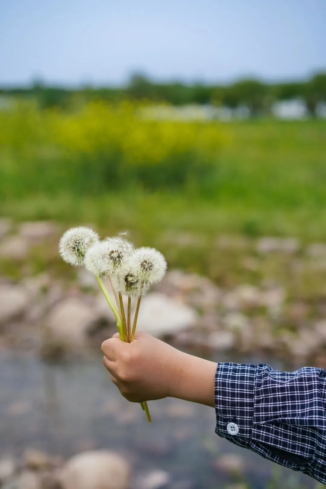 水边大片能做风车的白花益母草和蒲公英,都是春天送来的好玩具。