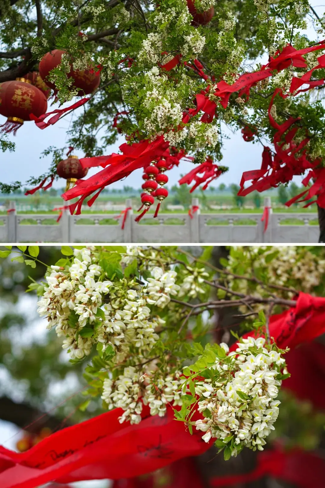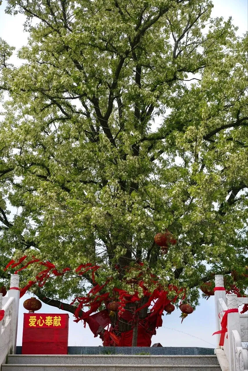 滹沱河的老神仙九枝槐又一年盛放了,九枝齐开,满树繁花迎风轻舞,甜香铺满了整个河滩,不用走到树下人已醉。