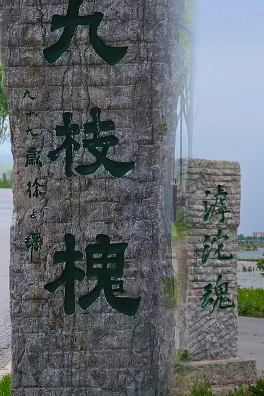 还有一些博主看到石碑上九枝槐题字旁写着“九十九岁”就以为这是树的年龄,实际这是题字人徐光耀老爷子上了年纪后的习惯,题字后署自己名字时要加上自己当年的年龄,所以九十九岁的是徐光耀不是树。在元氏的揽紫沟你还可以看到“九十八岁”徐光耀…
