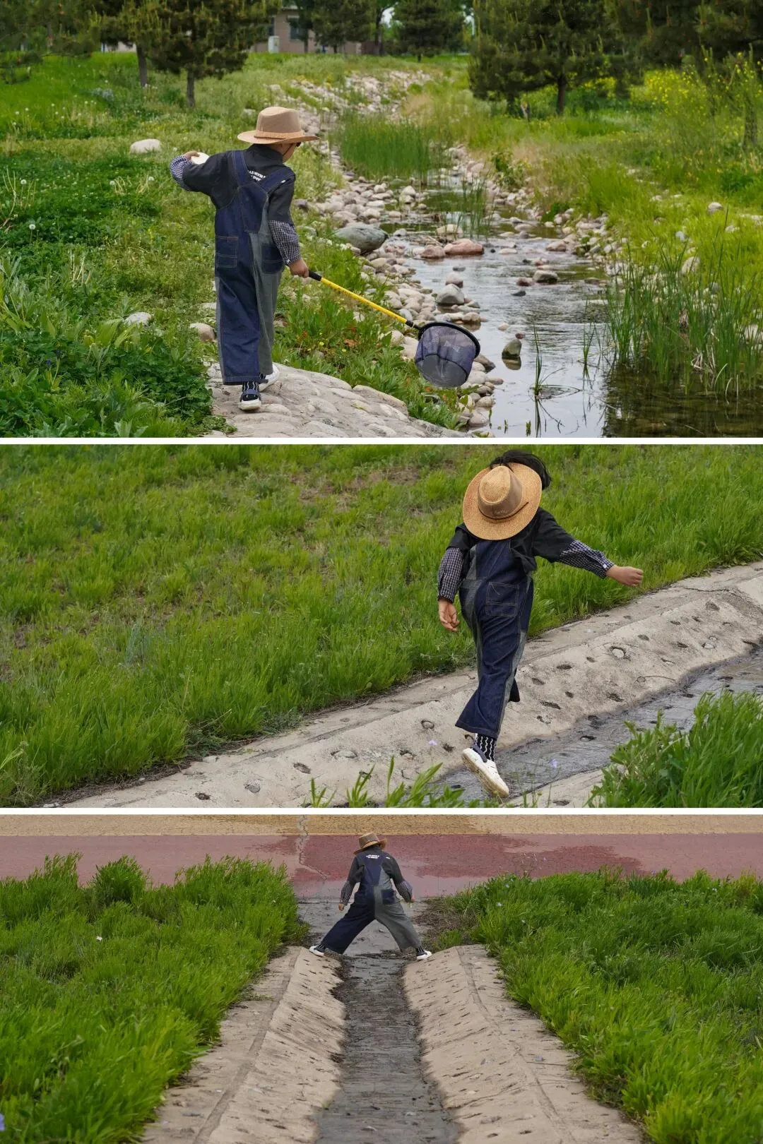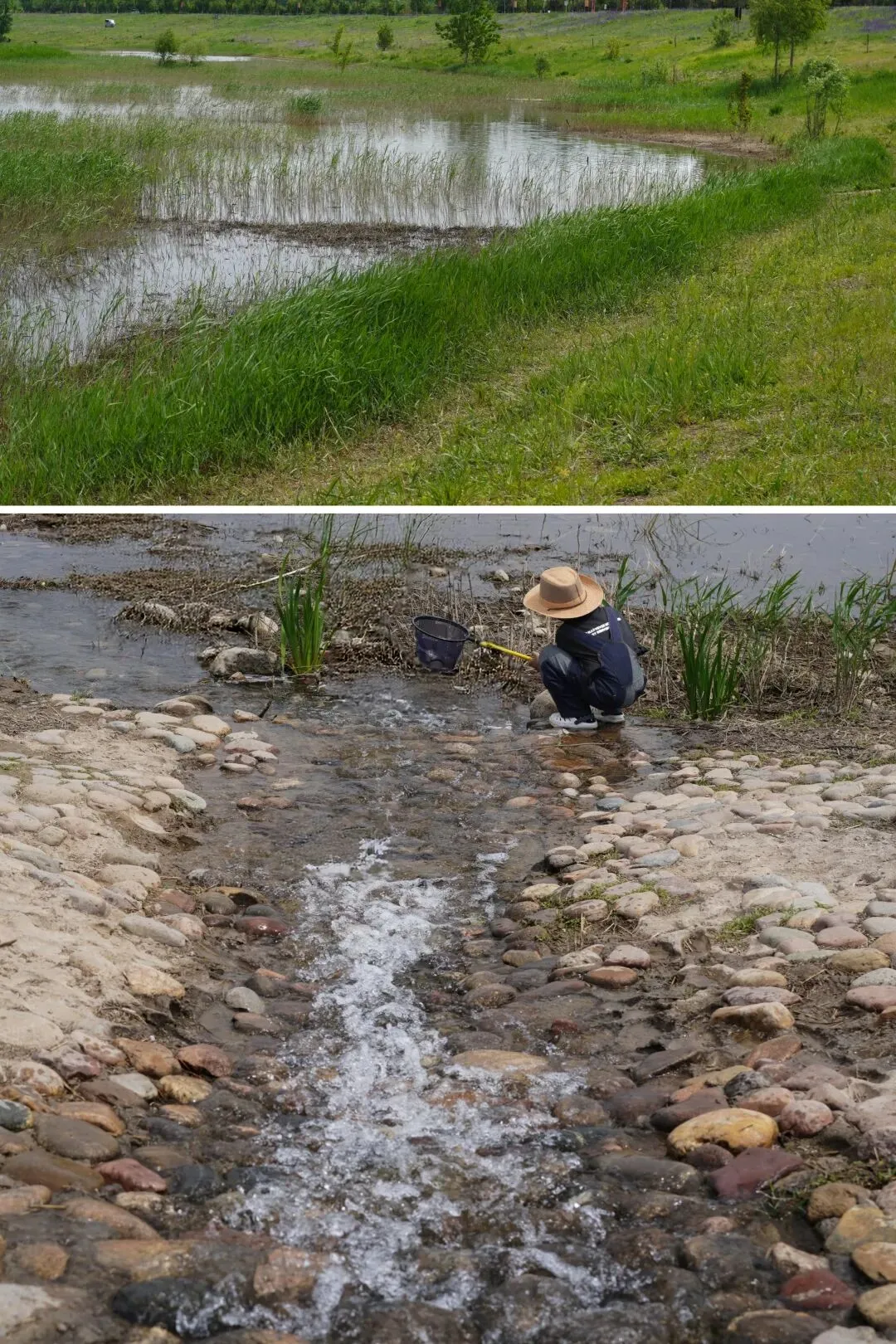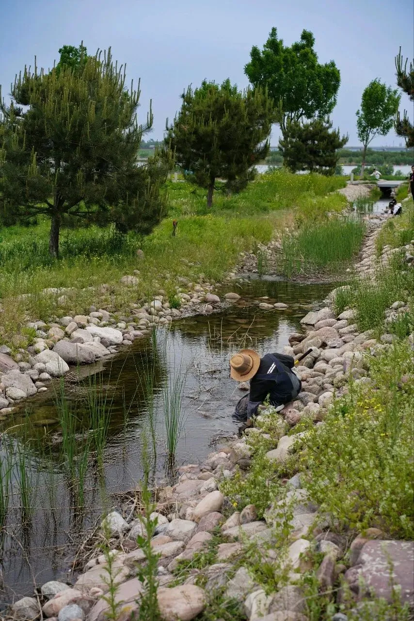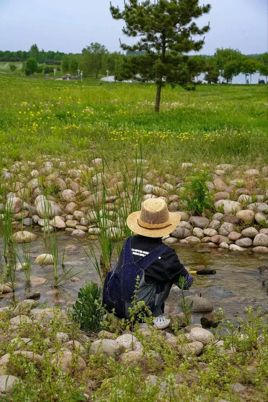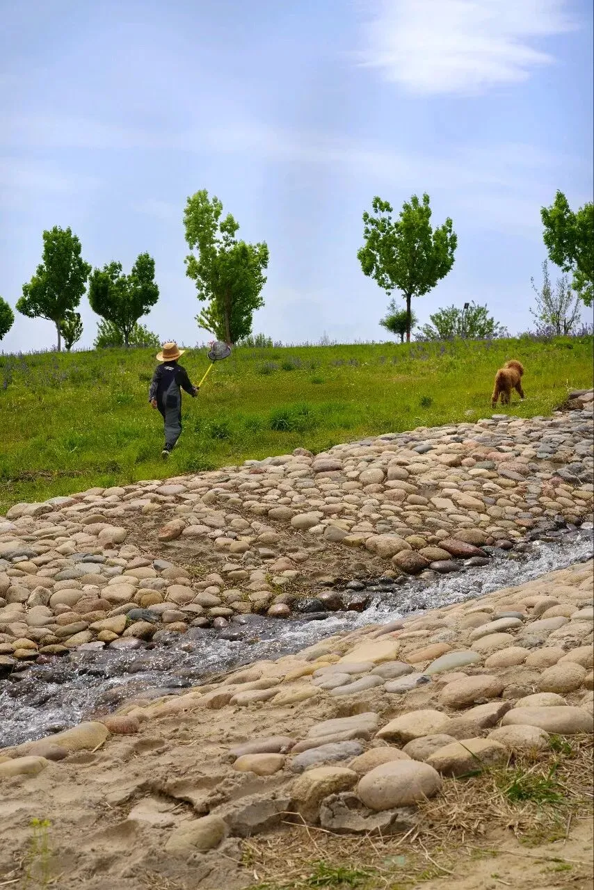 这个漂亮的人工小河道太养眼,虽然没见到鱼只有田螺,小朋友只要拿着网,空捞也开心。